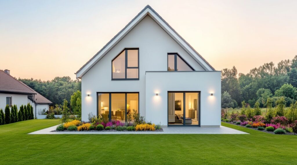 Concrete-look façades bring a raw, industrial character and timeless aesthetics. Their texture can be completely smooth or subtly structured, which allows for different visual effects. Such a finish emphasizes minimalism, clarity of form, and architectural expression, while at the same time providing high resistance to weather conditions and easy maintenance.